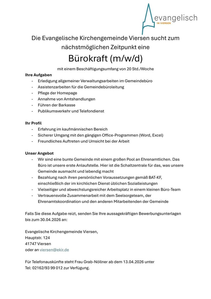 Bürokraft (m/w/d) für 20 Std./Woche